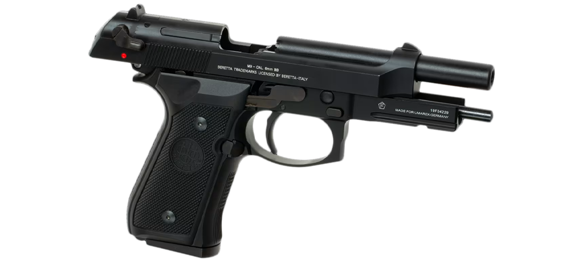 Ce BERETTA™ M9 est doté d'un système blowback, cela signifie que la culasse est mobile lors des tirs. Comme pour l'arme à feu réelle, une fois la dernière bille tirée, la culasse reste verrouillée en position arrière. Le réglage hop-up se fait via un outil spécifique livré avec la réplique. Il ne vous sera pas obligé d'ôter la culasse.