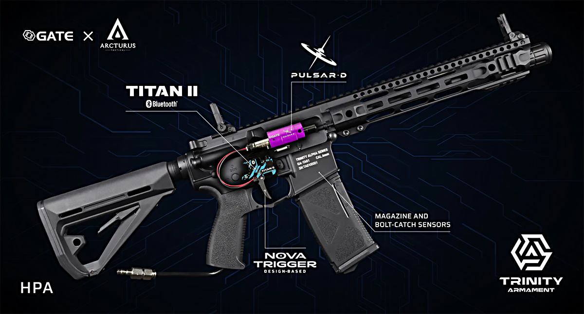 Il s'agit de la première série de répliques HPA de chez Gate à être équipée d'un système Pulsar™ D. La gamme Trinity Armament™ s'adressent à tous ceux qui désirent des performances élevées et cela sorite d'usine.